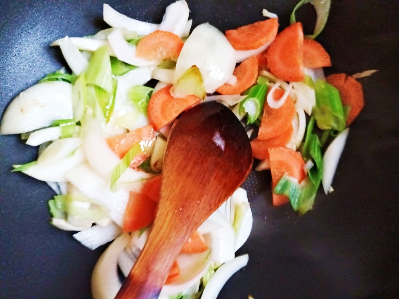 양파가 아삭해질 정도로 익으면 당근을 넣어 볶아줍니다.
