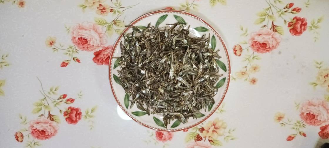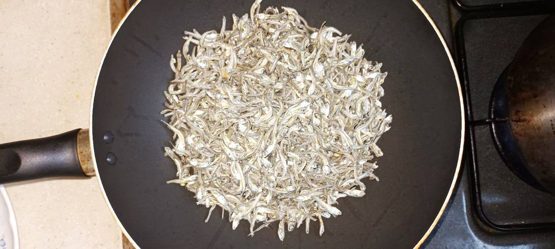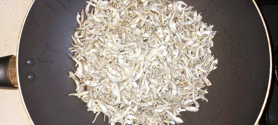 멸치가 노릇노릇해질 때까지 잘 볶아줍니다. 볶아진 멸치를 접시에 덜어 놓습니다.
