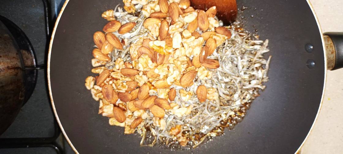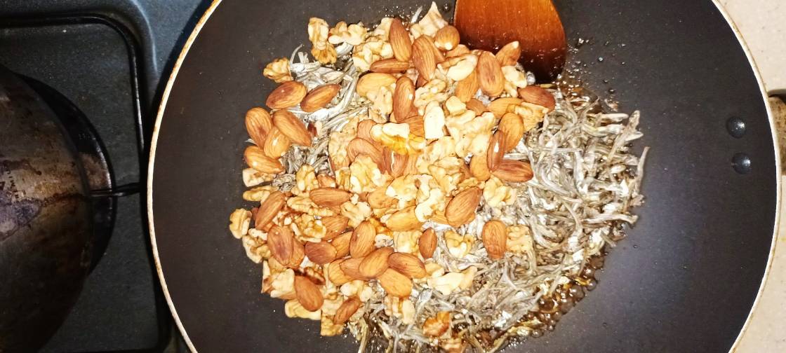 견과류 멸치볶음 맛있게 만드는법을 소개합니다. 멸치 견과류 볶음은 영양도 많고 밑반찬으로 만들어 놓으면 매끼 식사에 걱정을 덜어줄 반찬입니다. 이웃님 들이 아시다시피 오메가-3 지방산이 많이 함유되어 있어서 적당량을 먹으면 심장질환 위험을 낮춰준다는 것이 여러 연구에서 밝혀졌습니다. 멸치 또한 칼슘이 풍부해서 아이들 성장발달과 어른의 골다공증 예방에 좋다고 합니다. 이렇게 영양 많은 자주 만들어 먹어야겠습니다.저 어릴 때는 견과류가 흔한 먹 거리는 아니었습니다. 대추는 흔했지만 호두나 , 잣은 귀한 식재료였습니다. 명절, 제사 때 그리고 정월 대보름날 부럼을 깬다고 호두를 먹었습니다. 지금은 누구나 마트에 가면 쉽게 살 수가 있습니다. 견과류 종류도 수입이 되어 다양합니다. 오늘은 호두와 아몬드를 넣고 영양 만점 견과류 멸치볶음 맛있게 만드는법을 살펴보겠습니다.