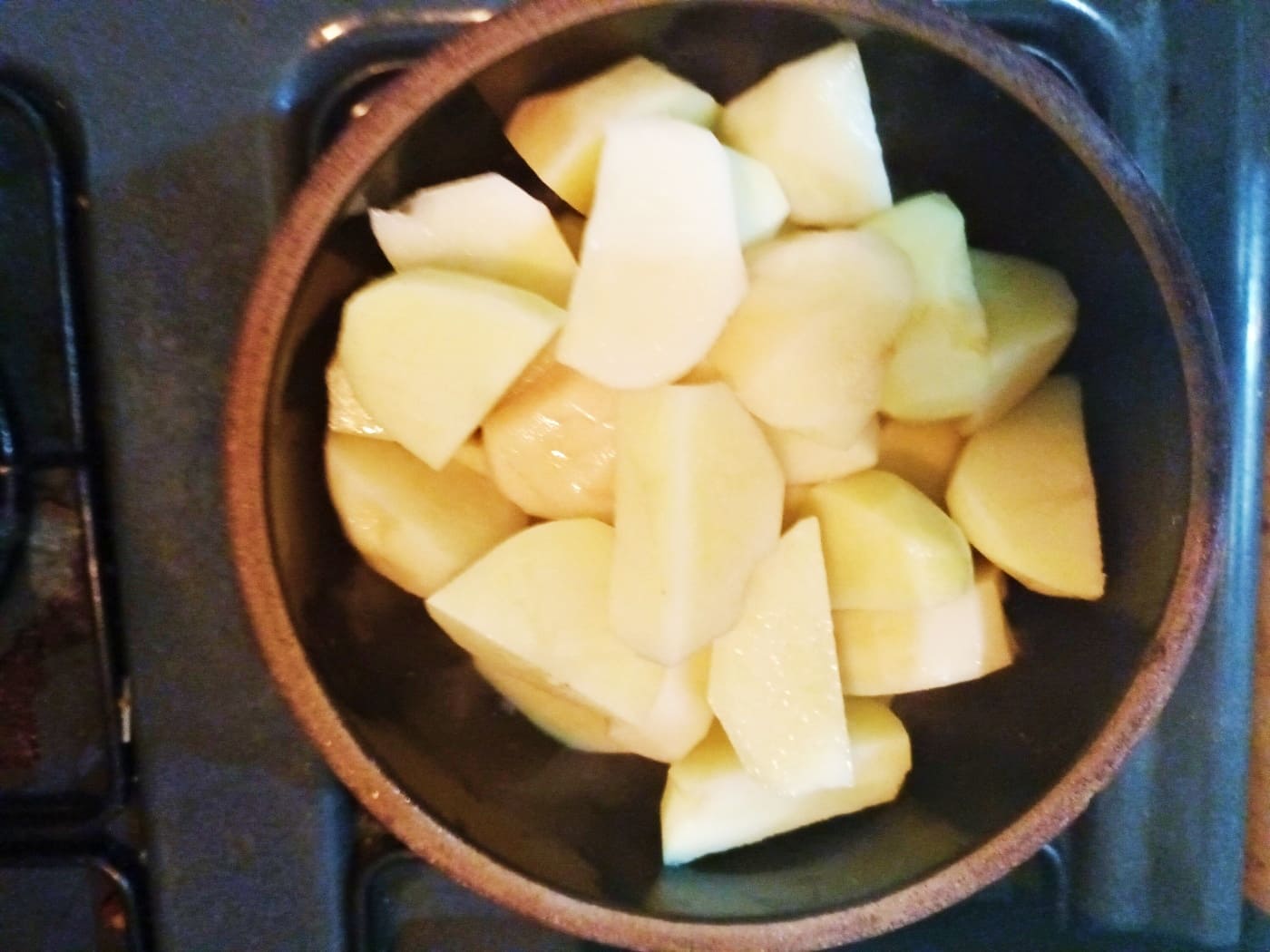 감자 반으로 잘라서 3 등분한다 (큼직하게 썰어 놓습니다.)