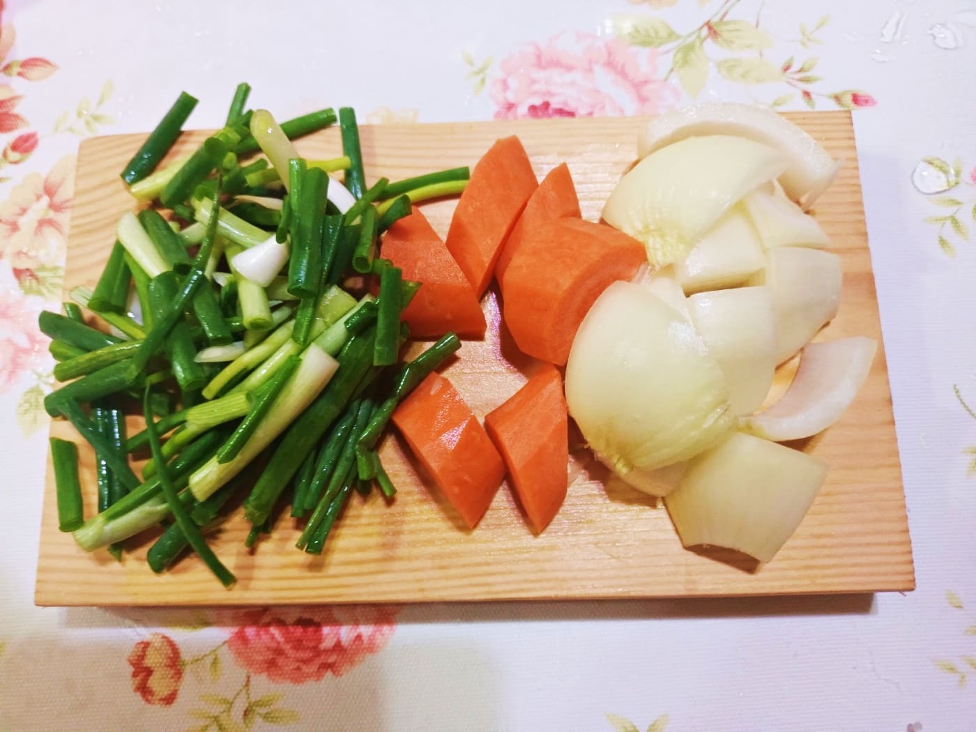 양파도 큼직하게 썰어 준비하시고 쪽파도 3센티 정도 잘라서 준비합니다.