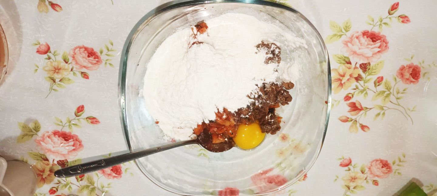 밀가루 1컵을 볼에 넣어줍니다. 청국장 반 컵을 볼에 넣어줍니다.( 취향에 따라서 간이 짜면 밀가루 농도를 보면서 추가로 넣어 간을 맞춰 줍니다.) 계란을 1개를 깨트려서 볼에 넣어줍니다.