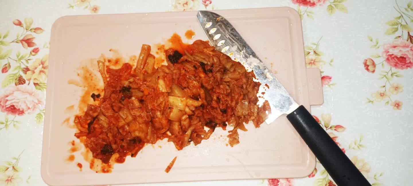 김장김치를 송송 잘게 썰어 볼에 넣어줍니다.