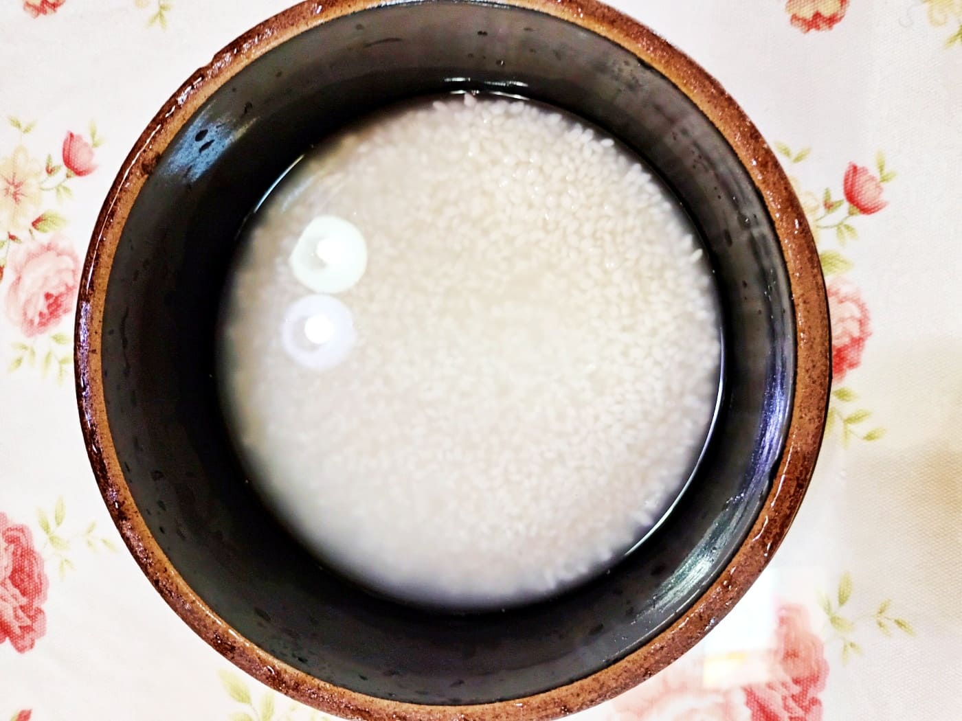 뚝배기에 쌀을 안쳐 줍니다.