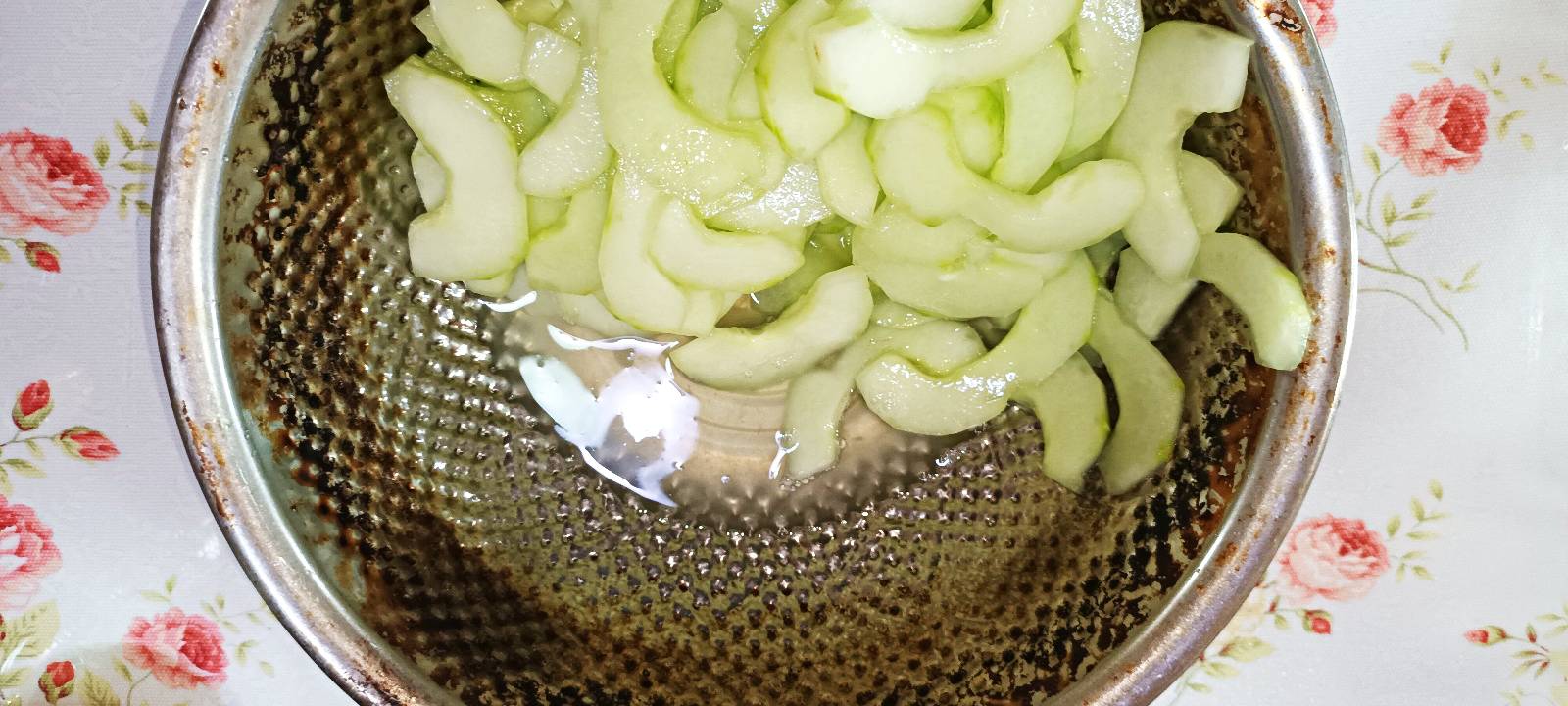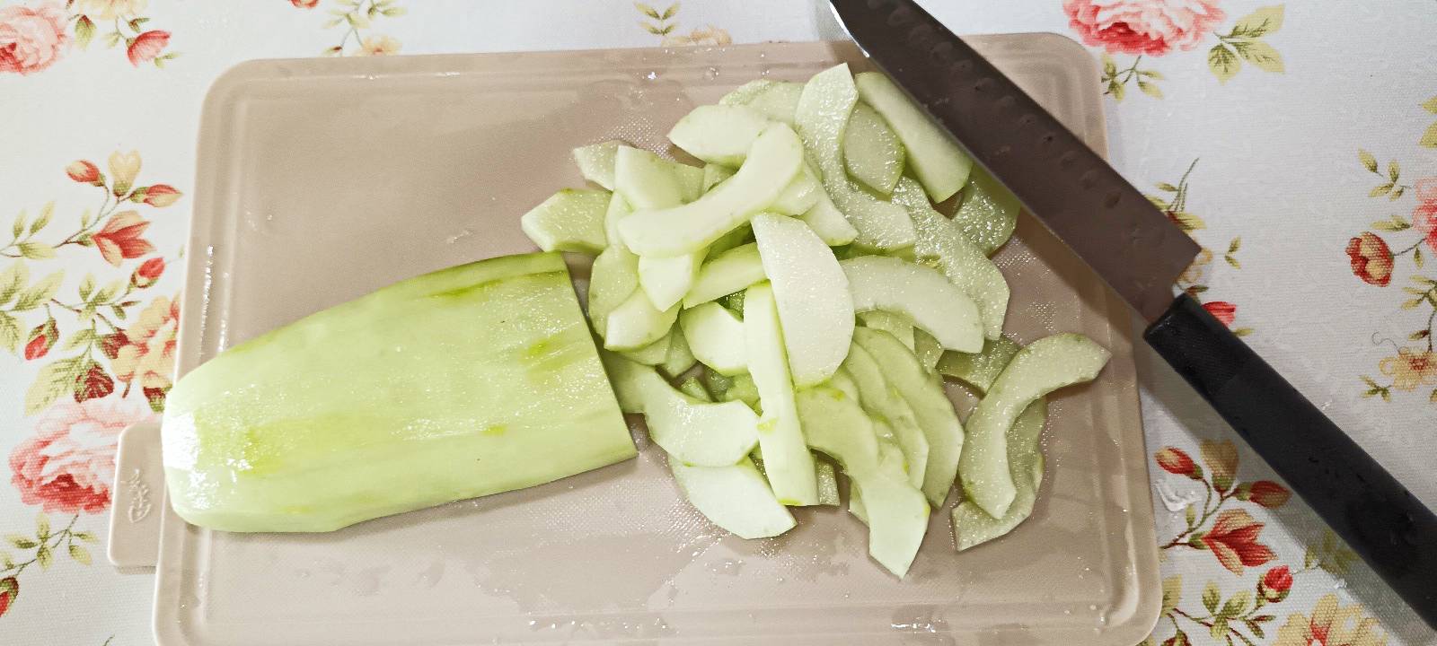 노각을 조금 도톰하게 썰어줍니다.