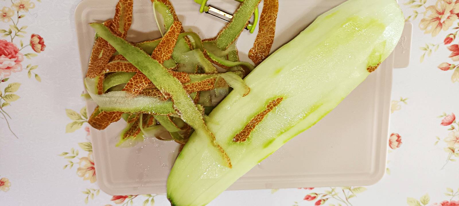 노각을 깨끗하게 씻어 필러로 껍질을 깍 아 줍니다.