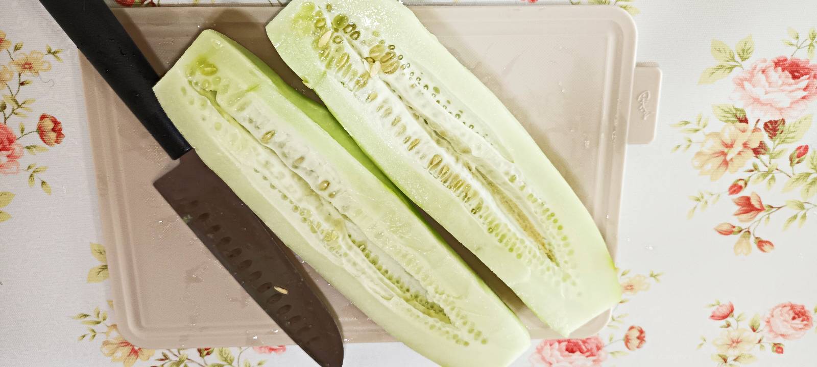 노각을 반으로 잘라줍니다.