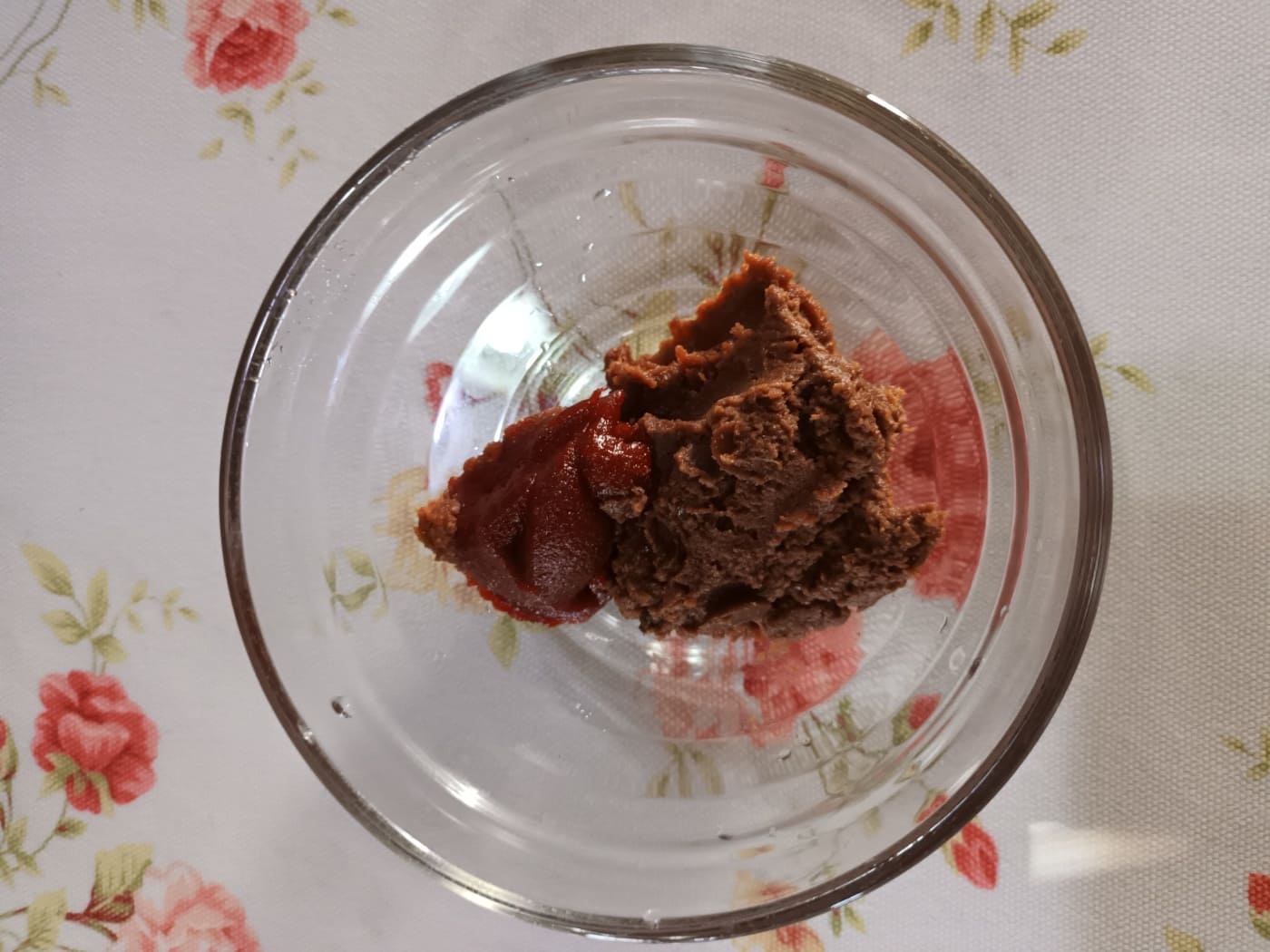 7. 된장 2숟가락과 고추장도 미리 멸치국물에 개어 놓습니다. 그래야 잘 풀어집니다.