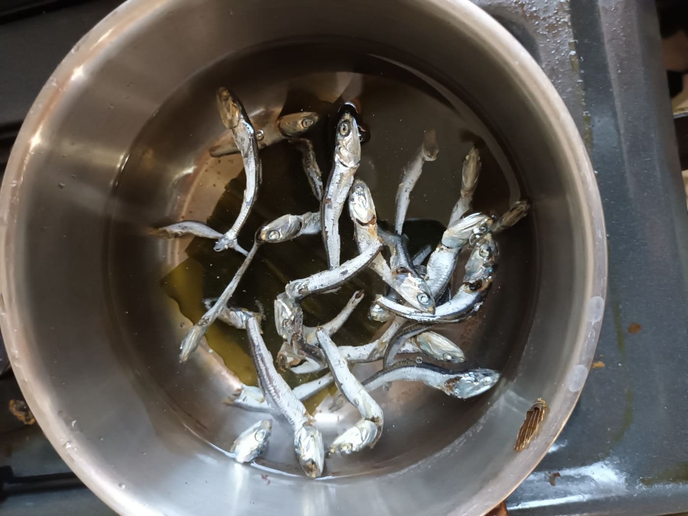 물 700cc, 멸치 한 줌, 다시마 2조각 (사진 참조)