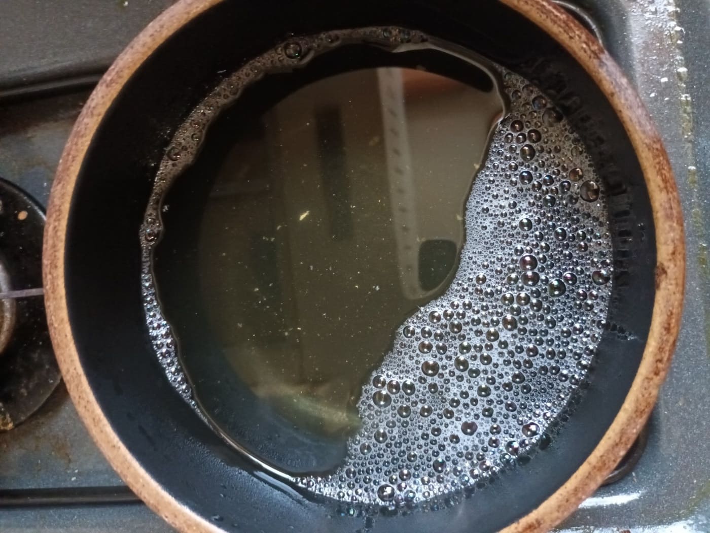8. 준비해 둔 멸치국물을 뚝배기에 넣고 불위에 올려서 끓여줍니다.