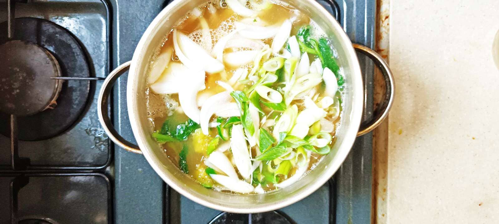 국물을 냄비에 부어 불 위에 올려줍니다.