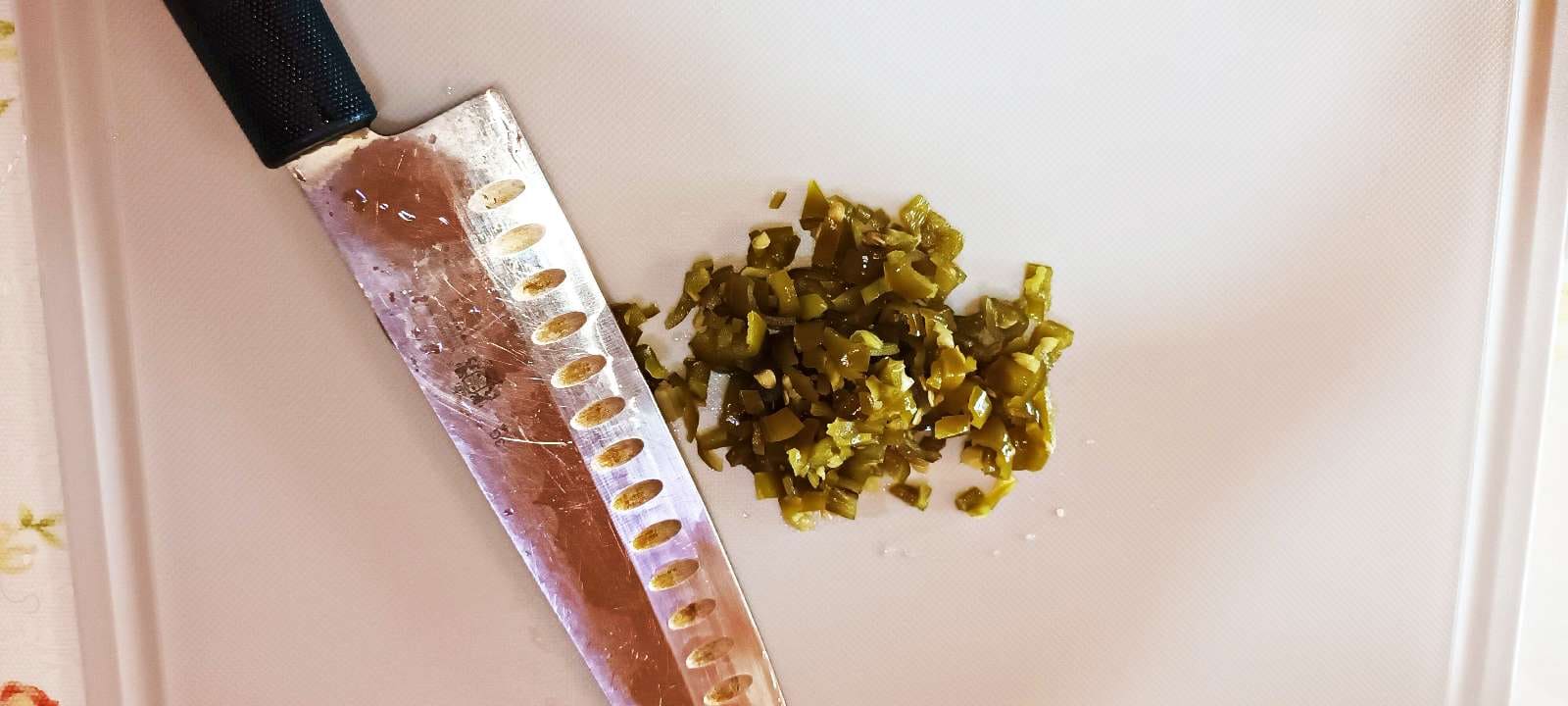 삭혀둔 고추 2개를 쫑쫑 썰어 줍니다.