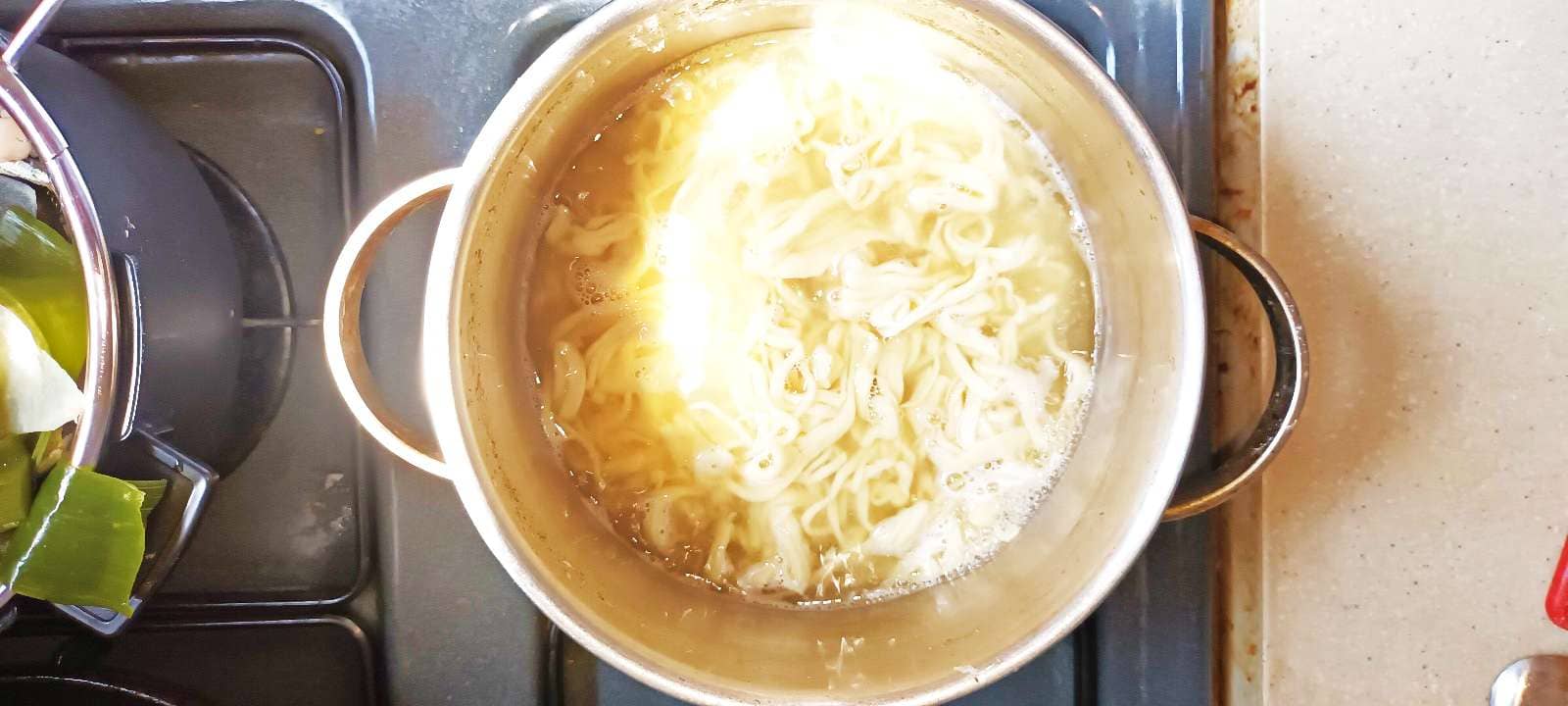 삼분정도 끓여 줍니다. 국수가 투명하고 매끄러우면 다 익었습니다.