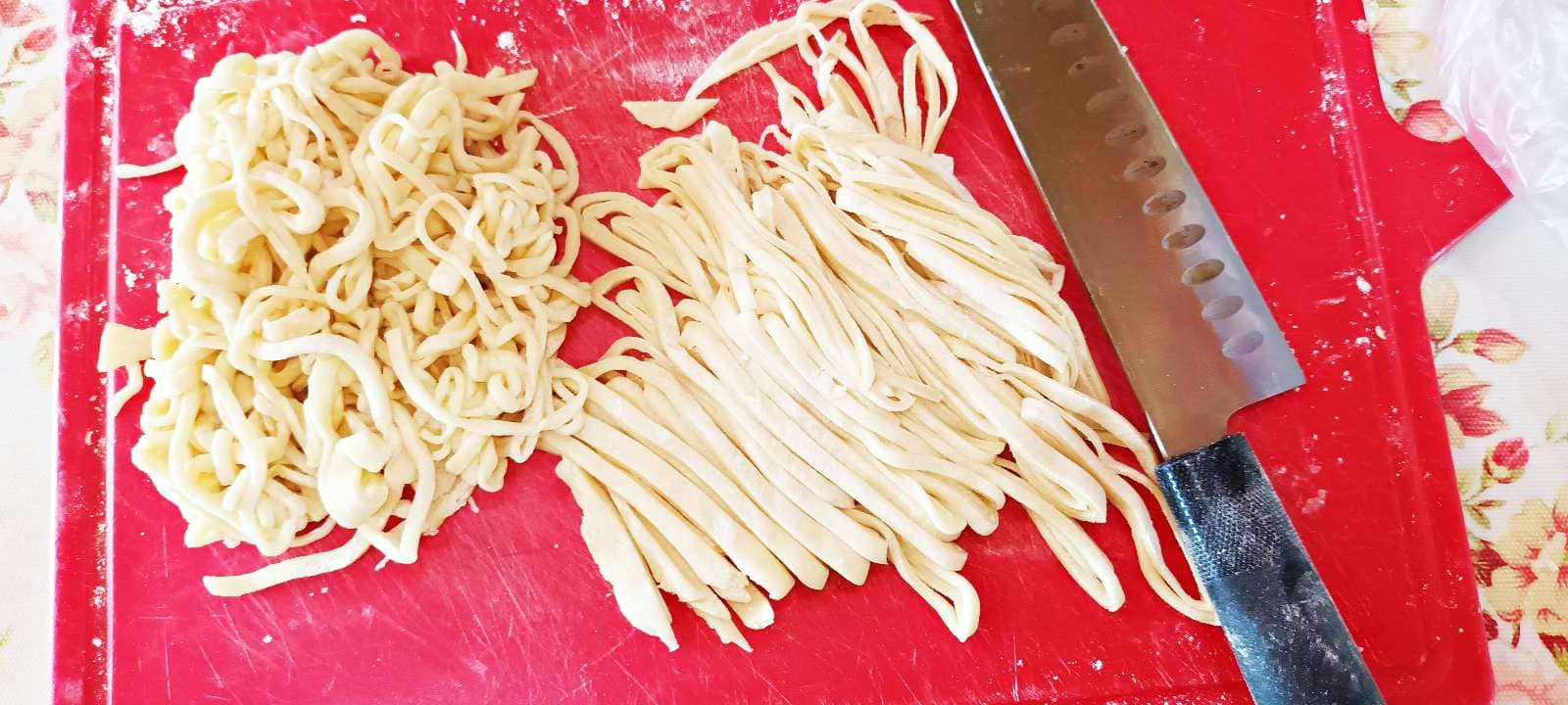 칼로 잘게 썰어줍니다. 안동 칼국수는 가늘게 썰수록 좋습니다.