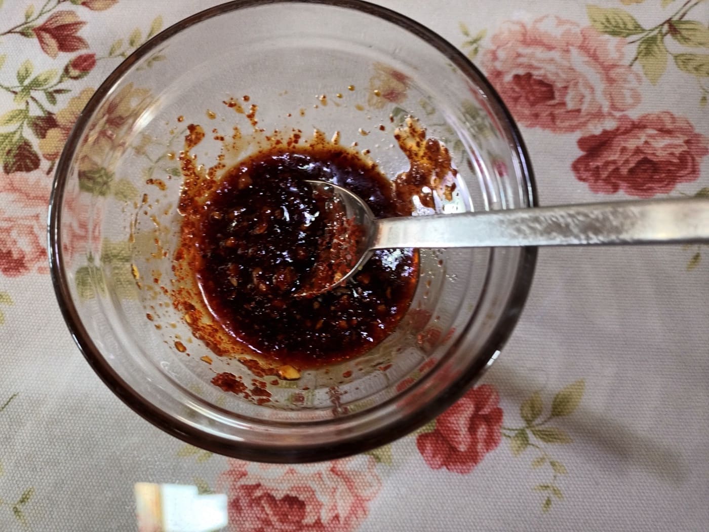 4. 간장 2숟가락, 고춧가루 1가락 , 물엿 1숟가락, 마늘 조금, 참기름