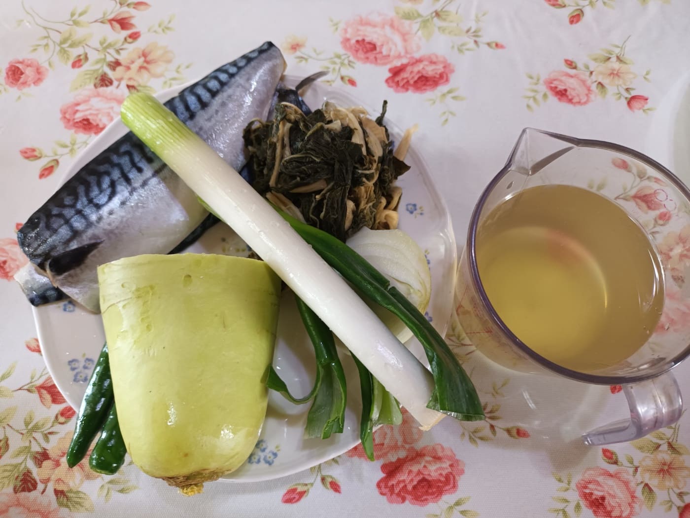 메인 재료: 고등어 1 마리, 우거지 삶은 것 한 대접, 중간크기 무 3 분의 1 토막,