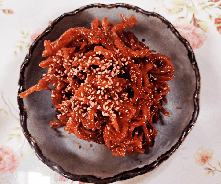 맛있는 진 미채를 그릇에 담아 보았습니다.