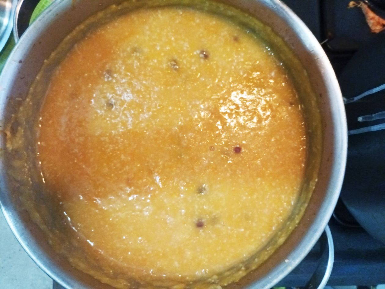 호박이 다 삶아졌으면 으깨어 줍니다. 입자가 고은 것을 좋아하시면 믹서기에 갈아 주시고 저처럼 건더기가 간혹 씹히는 맛을 좋아하시면 대충 으깨어 줍니다.